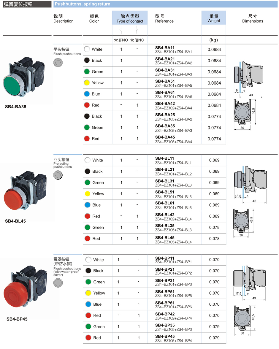 彈簧復位按鈕